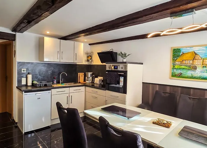Die Unterkunft verfügt über einen Essbereich mit einem Wasserkocher, einem Kühlschrank und einem Herd. Verbringen Sie einen schönen Abend in den nächstgelegenen Restaurants La Collina und Mampfy, die in unmittelbarer Nähe von der Villa Exklusives Altstadthaus mit Schlossblick zentral in Wernigerode ist.